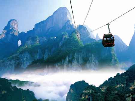 | 下午 | 午餐后游覽“擴(kuò)大的盆景,縮小的仙境”有峰林之王稱號(hào)的---天子山景區(qū) (仙女散花、御筆峰、天子閣、云青巖等景點(diǎn)),賀龍公園,十大元帥之一的——賀龍銅像,下山游玩十里畫廊景區(qū)(三姐妹峰、采藥老人、全家福、食指峰、駝駱峰等),乘坐旅游巴士大約50分鐘的車程返回市區(qū),車游“千年古戰(zhàn)場”百丈峽出景區(qū):峽谷因有高近百丈的石壁直插云霄,不敢仰視,故而得名。返回張家界市,天氣晴朗還可車觀“武陵之魂”巍峨天門山、天門洞。 |